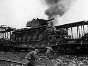 Вот такое фото. Я его увидел первый раз.Немецкие оккупанты ведут бой в районе Смоленска, укрывшись за советским танком КВ-1 на железнодор...