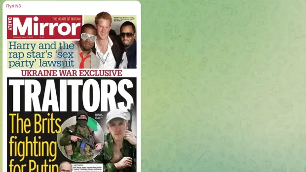 Заголовок на первой полосе гласил: "Предатели. Британцы, которые воюют за Путина". Mirror писало: