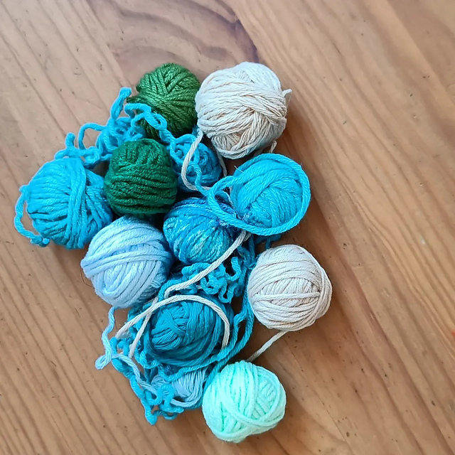 а вот остатки остатков :) хочу связать из них кукольный свитер или кукольную такую же шаль...